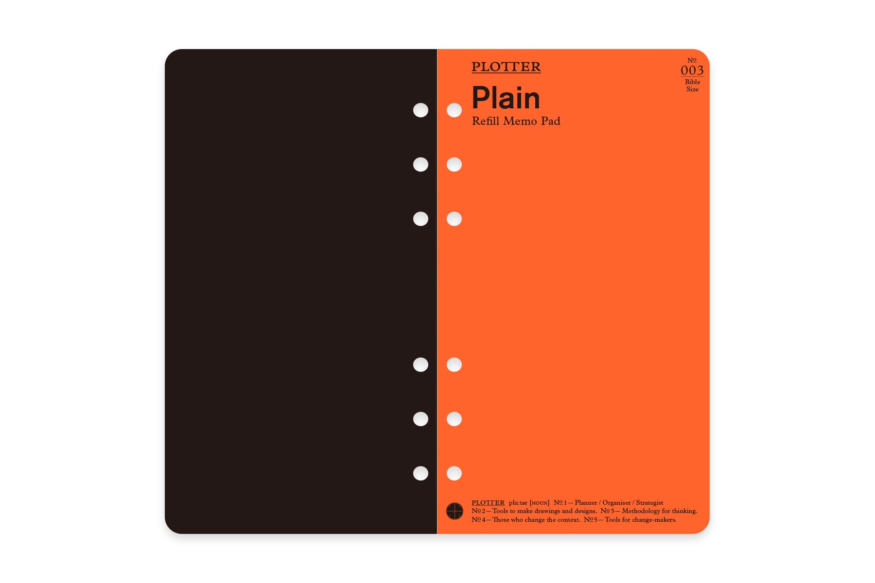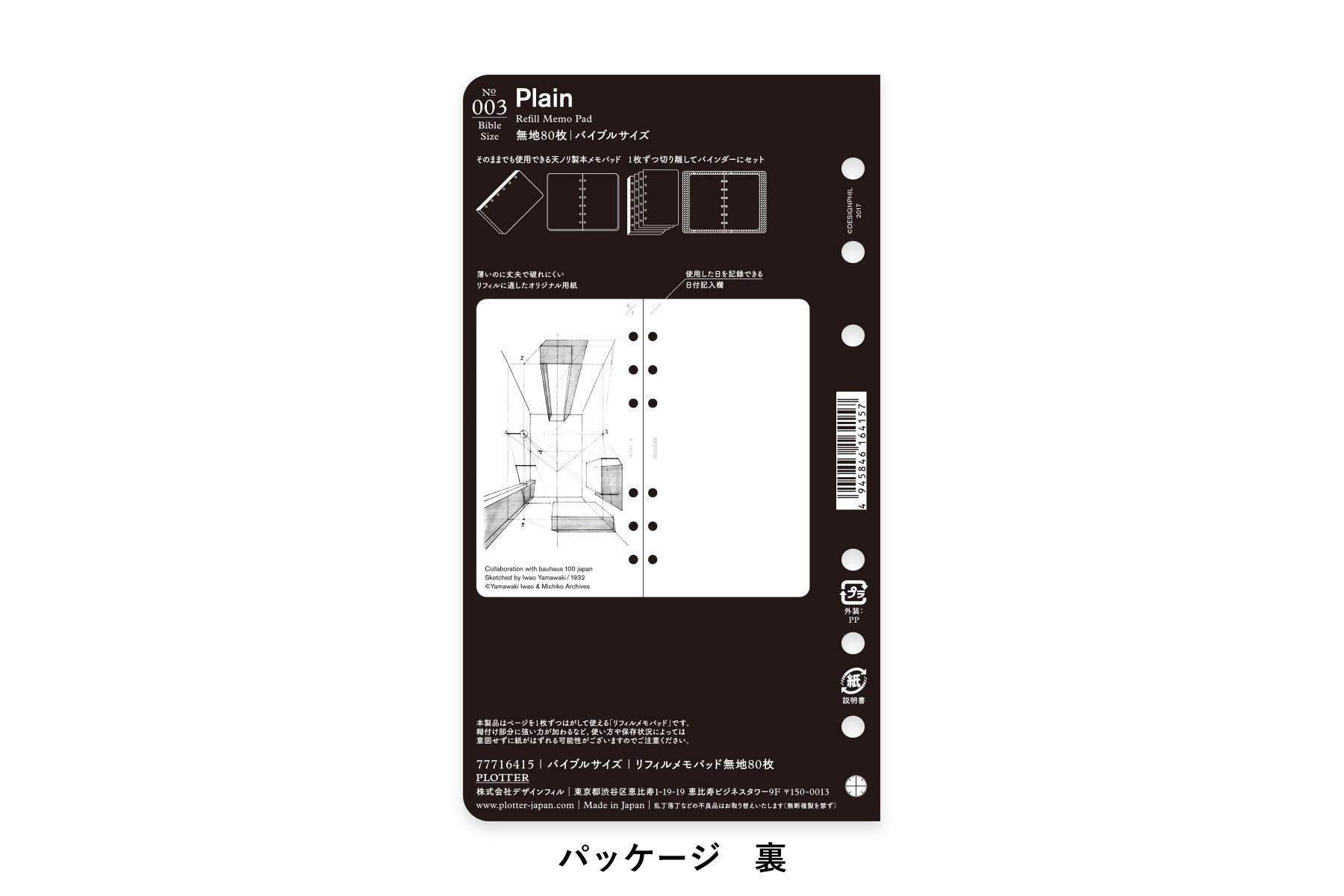 Refill Memo Pad Plain is designed for people who want to write freely, including letters, diagrams, illustrations, and blank space that is indispensable for creative work. It's made of PLOTTER original refill paper that is thin but strong and tear-resistant. You can enjoy a variety of writing tools such as pens or fountain pen inks on this paper without feathering and bleed-through.
