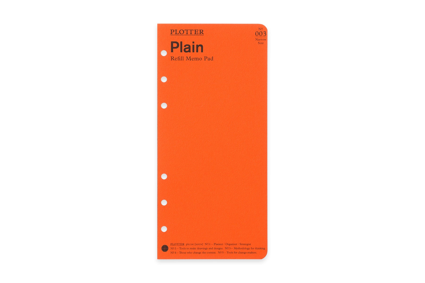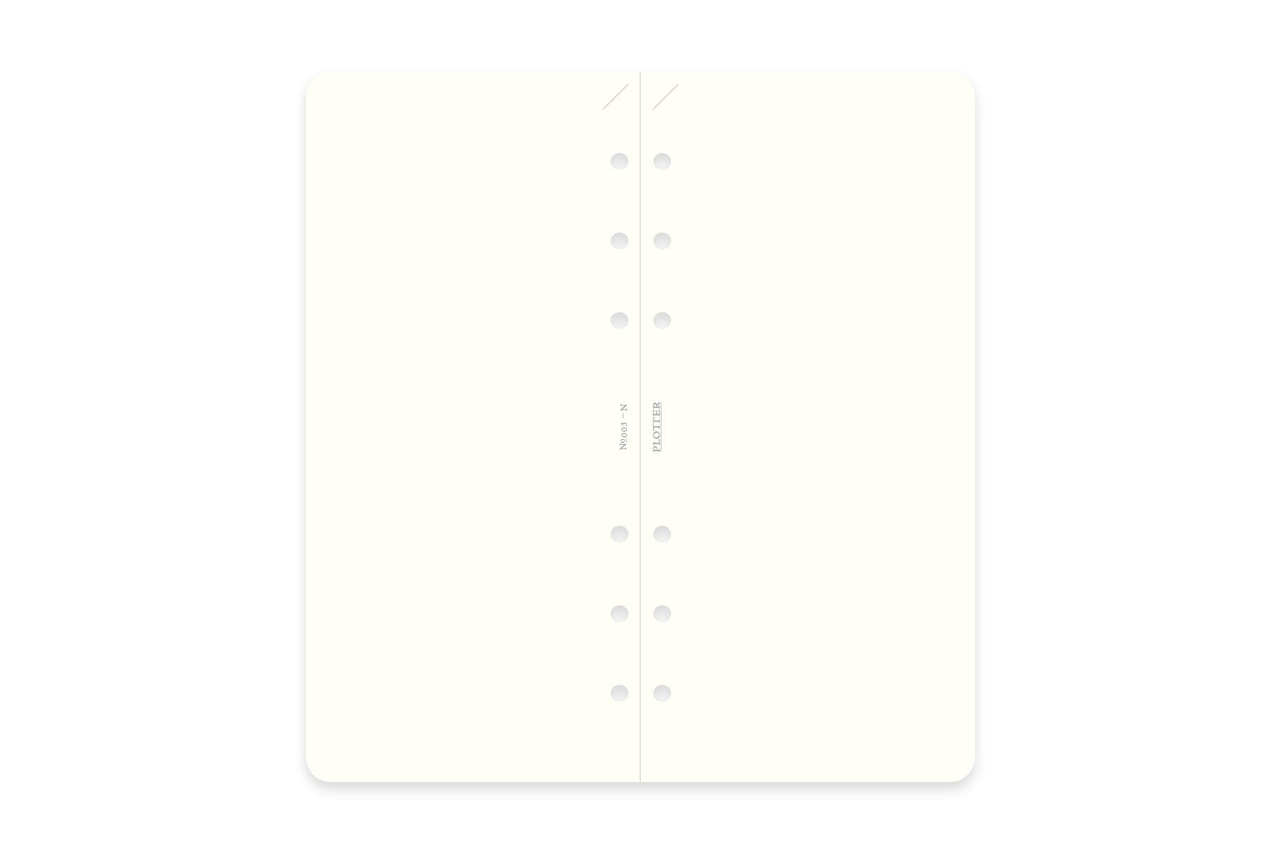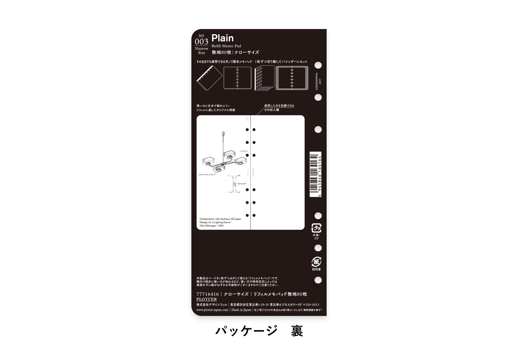 Refill Memo Pad Plain is designed for people who want to write freely, including letters, diagrams, illustrations, and blank space that is indispensable for creative work. It's made of PLOTTER original refill paper that is thin but strong and tear-resistant. You can enjoy a variety of writing tools such as pens or fountain pen inks on this paper without feathering and bleed-through.