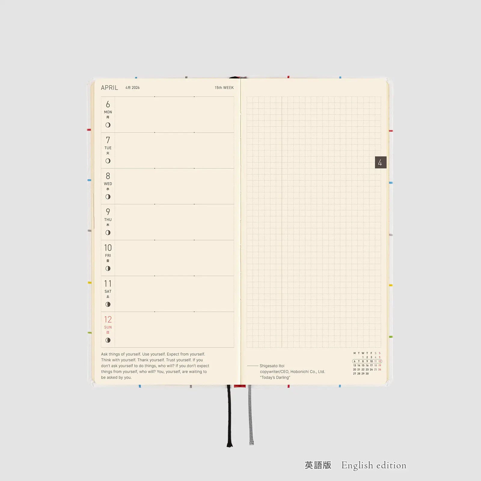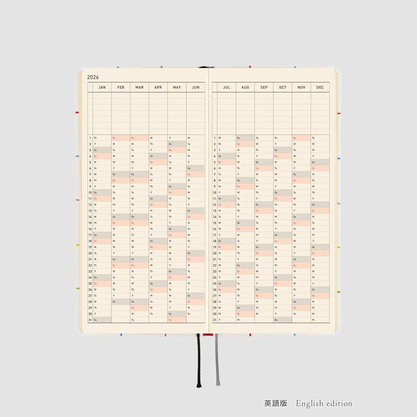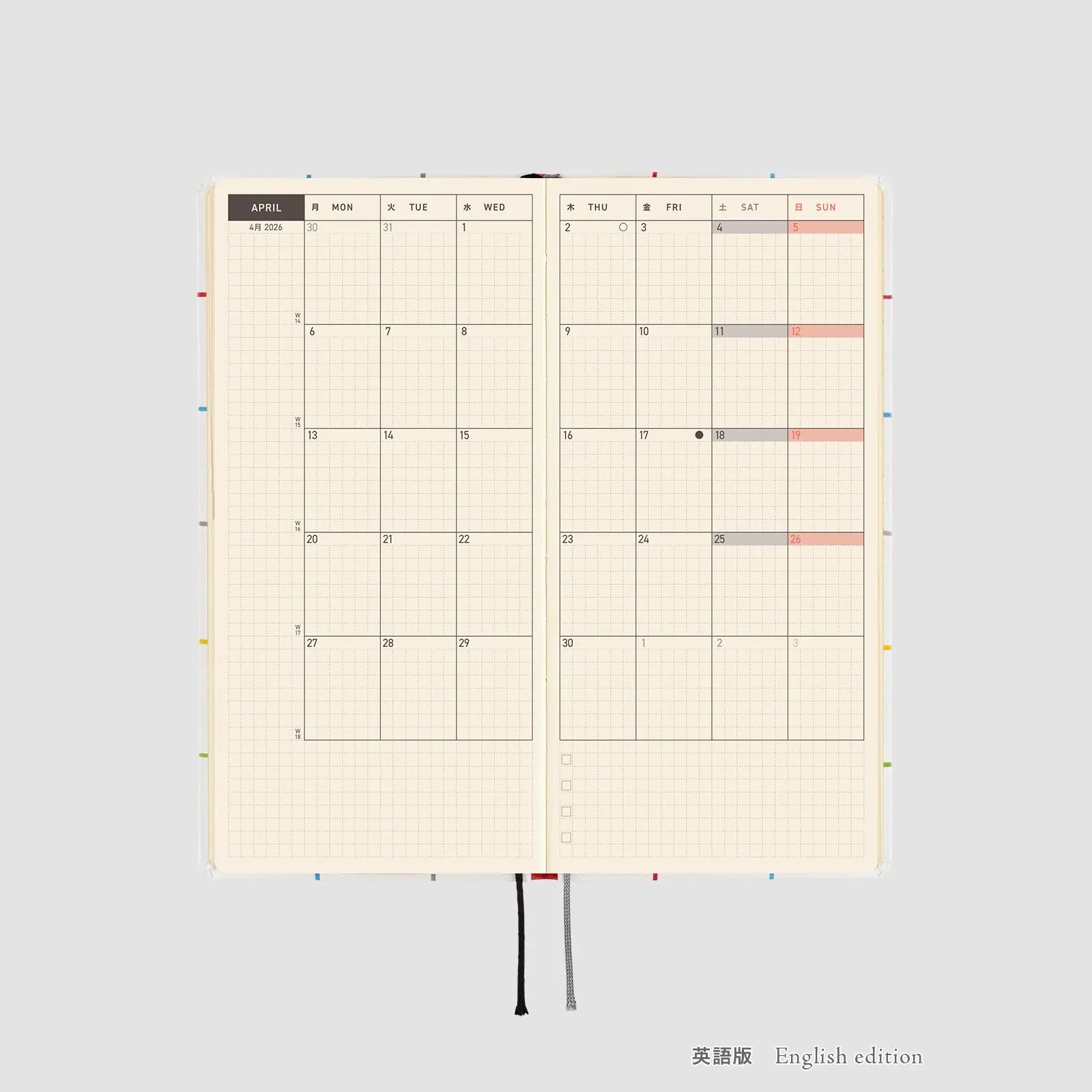 The Weeks book has space for writing in plans or journal entries, and it also has 71 pages of grid paper memo pages in the back (75 pages in the English edition). The back of the book contains bonus pages, including Memories 2026 and 12 Switches to Help You Focus.