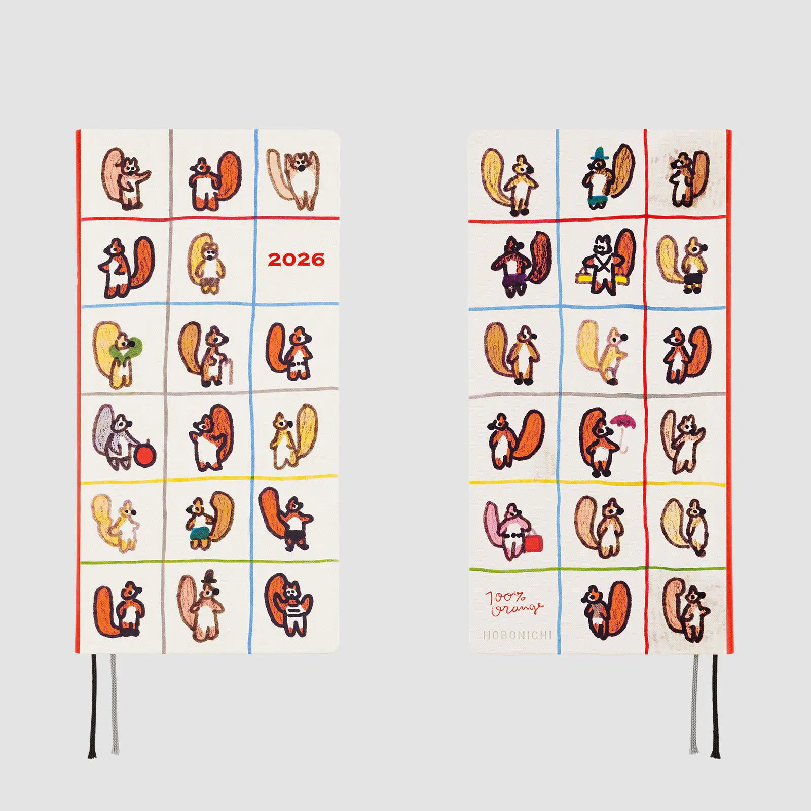 ■ Hobonichi Techo 2026 100%ORANGE: Squirrel’s Moving Day Weeks Hardcover Book / Weekly Horizontal / Jan start / Mon start - English Edition