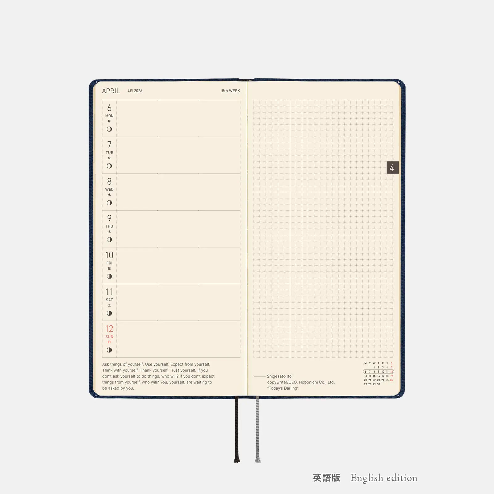 ■ Hobonichi Techo 2026 Colors: Cosmo Blue Weeks Hardcover Book / Weekly Horizontal / Jan start / Mon start - English Edition
