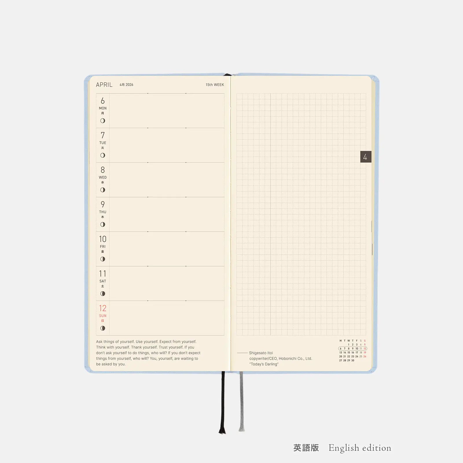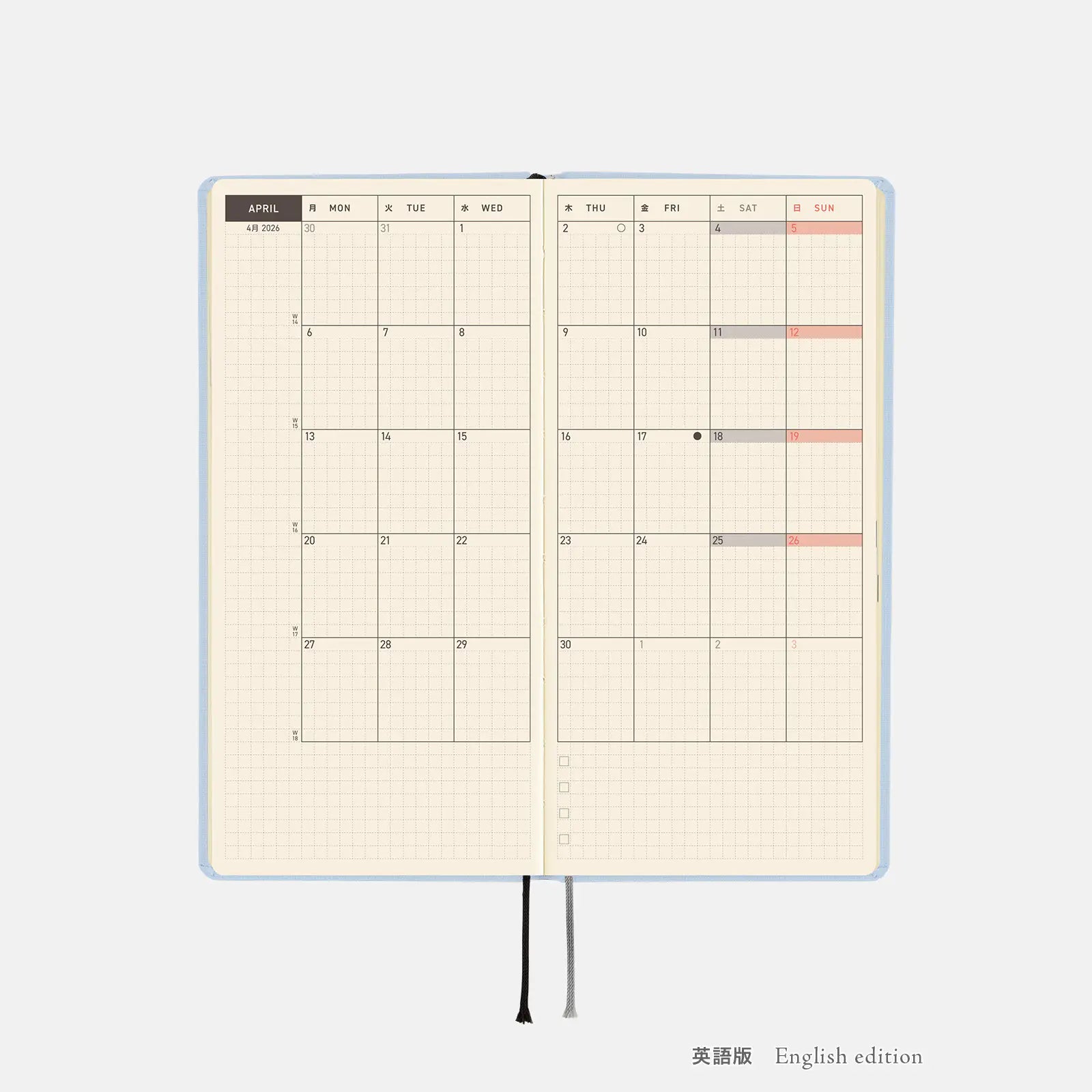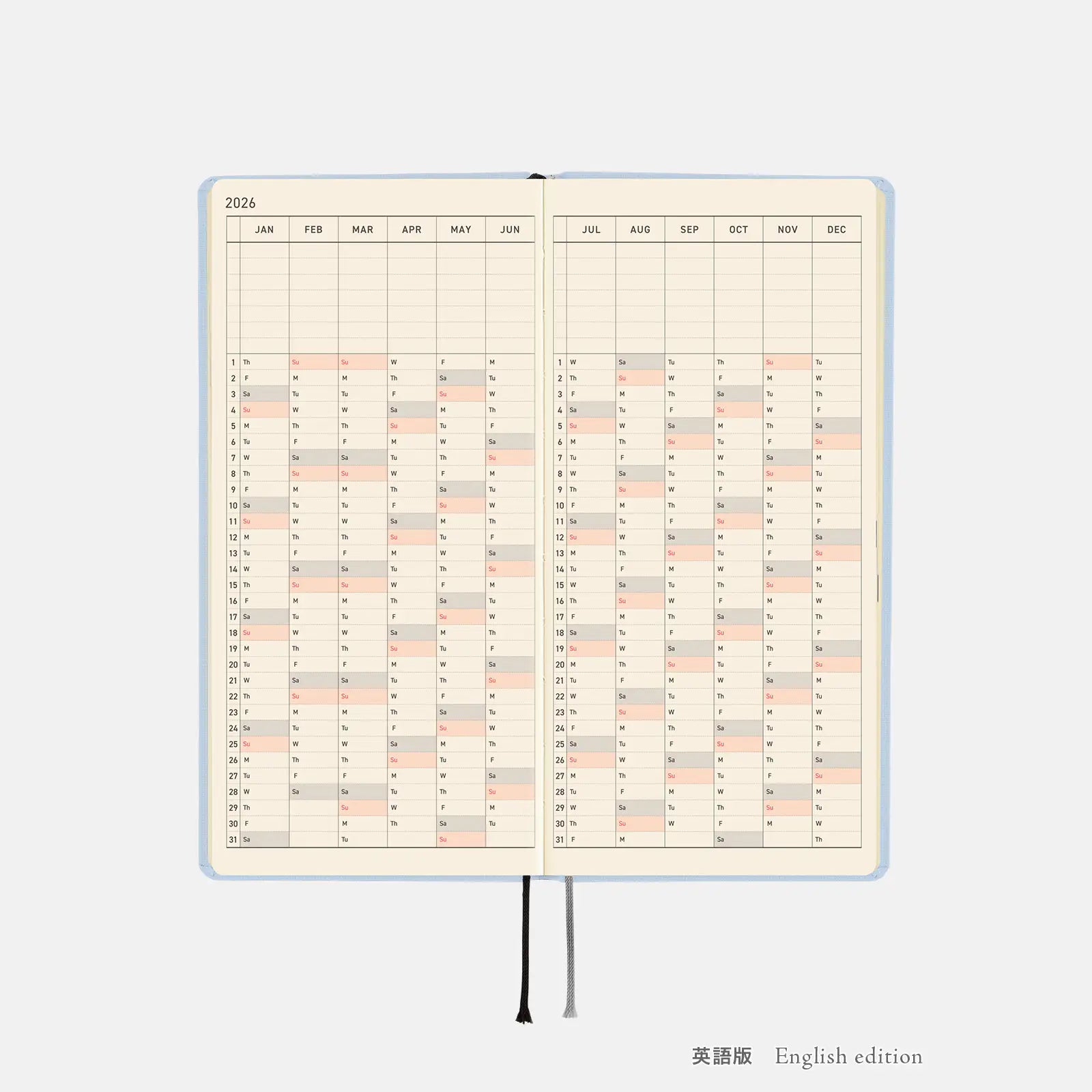 ■ Hobonichi Techo 2026 Colors: Sky Mist Weeks Hardcover Book / Weekly Horizontal / Jan start / Mon start - English Edition