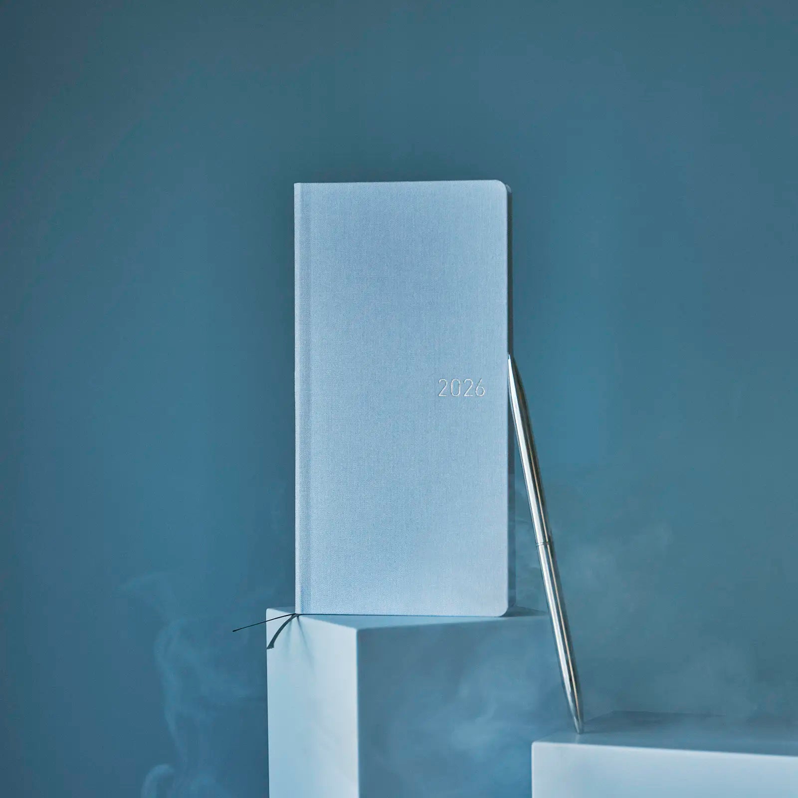 Sky Mist is a pale blue techo. The year 2026 is foil-pressed onto the cover in silver, shining brightly as it catches the light. This design will refresh you like the glistening dew drops shimmering under the early-morning sky.