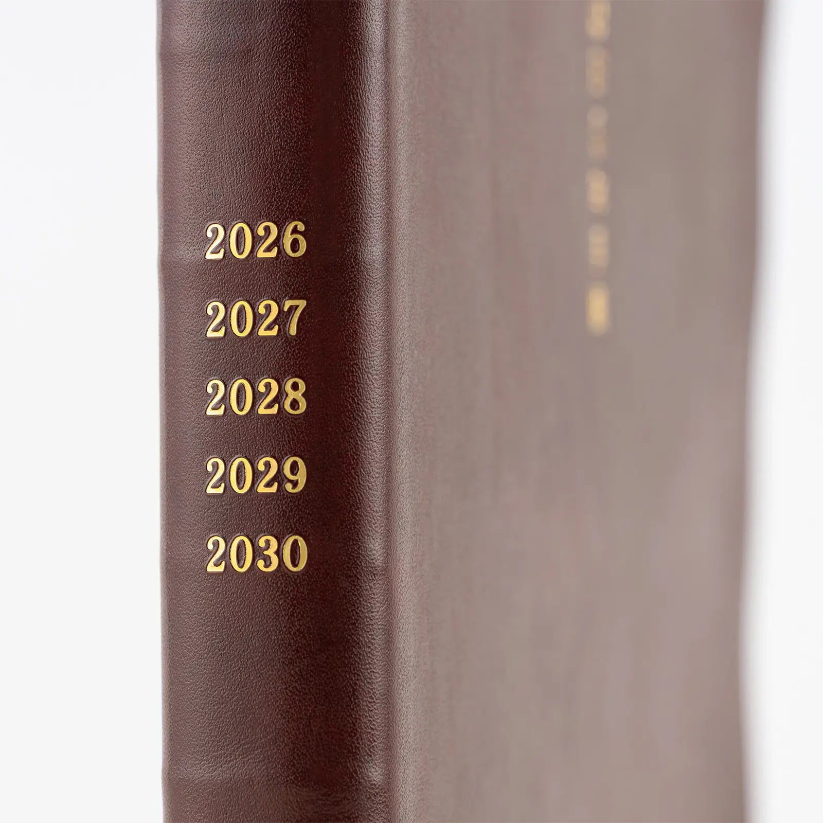 This A5-size book has pages dated across a 5-year span. The textured cover is a calming shade of brown with the years foil-pressed in gold, and the book contains a dark brown bookmark for a complete look that works well without adding an additional cover.