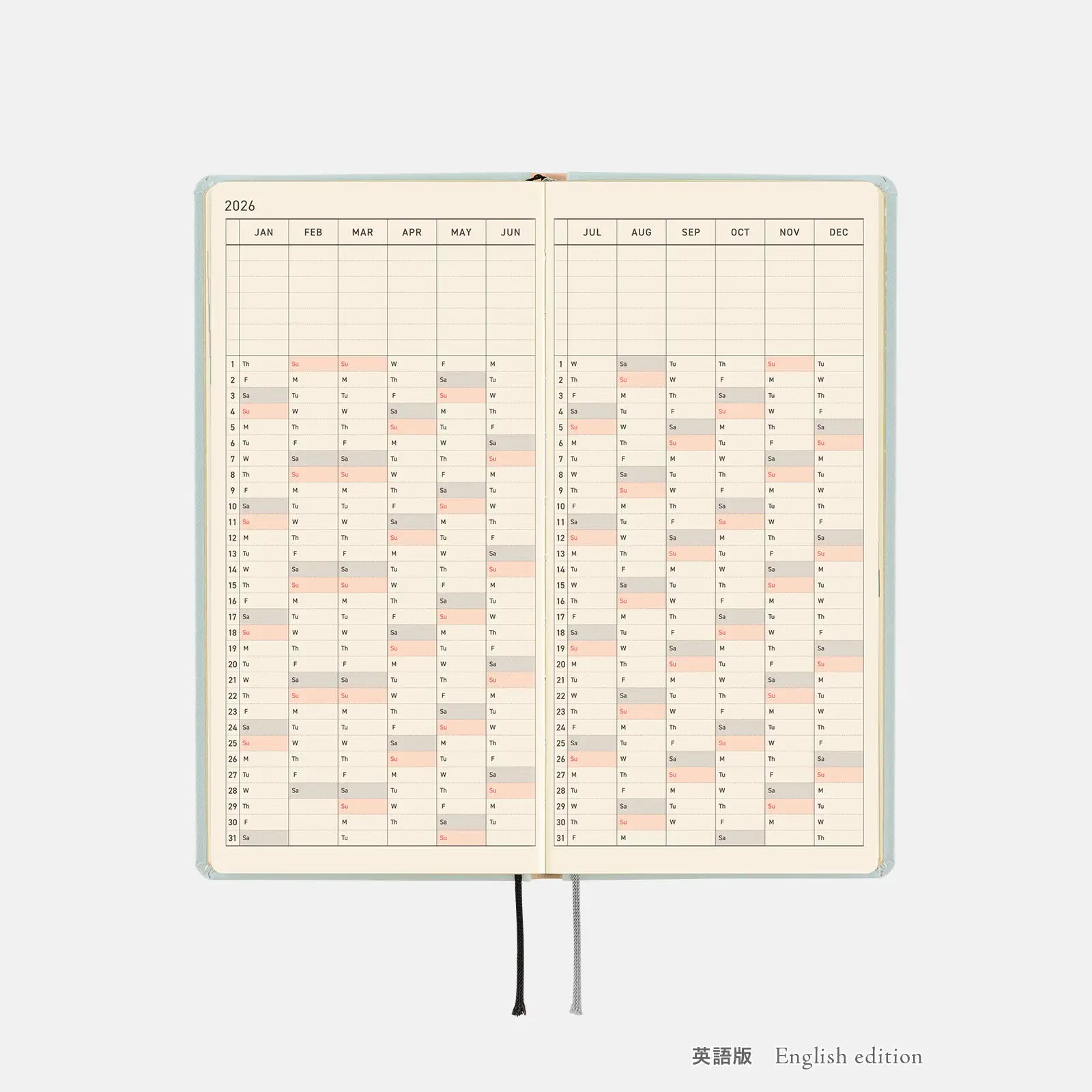 The Weeks book has space for writing in plans or journal entries, and it also has 71 pages of grid paper memo pages in the back (75 pages in the English edition). The back of the book contains bonus pages, including Memories 2026 and 12 Switches to Help You Focus.