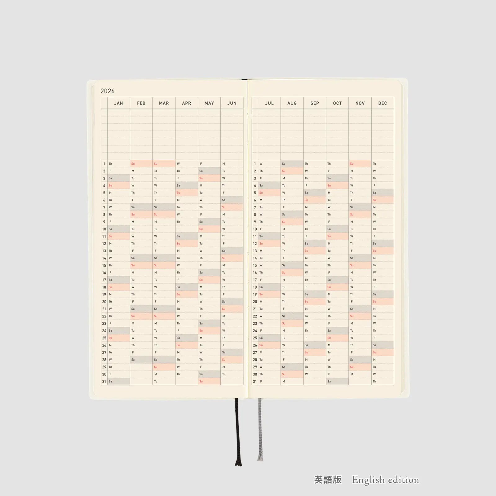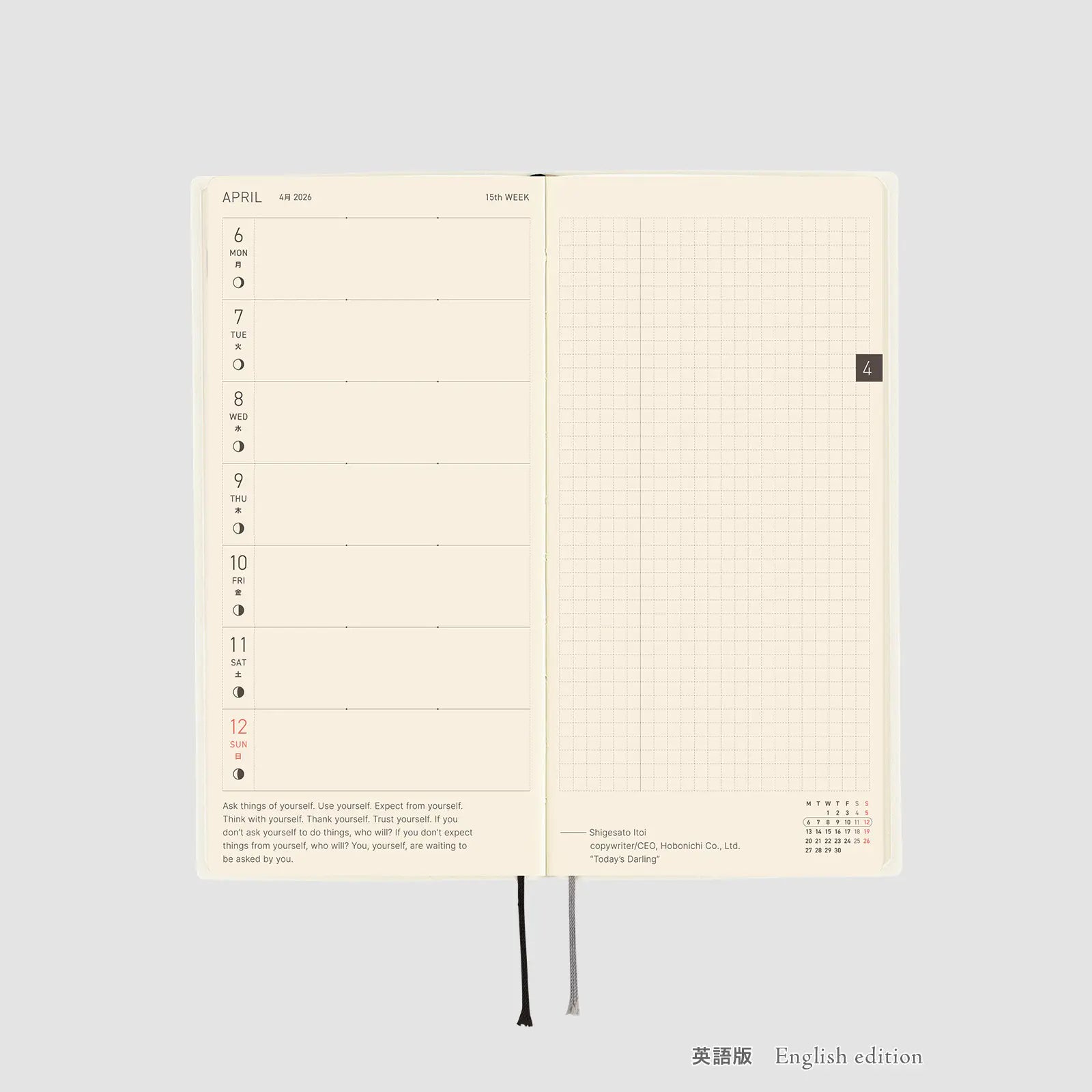 This listing is for a Hobonichi Techo 2026 White Line: Ivory Weeks Softcover Book / Weekly Horizontal / Jan start / Mon start - English Edition.