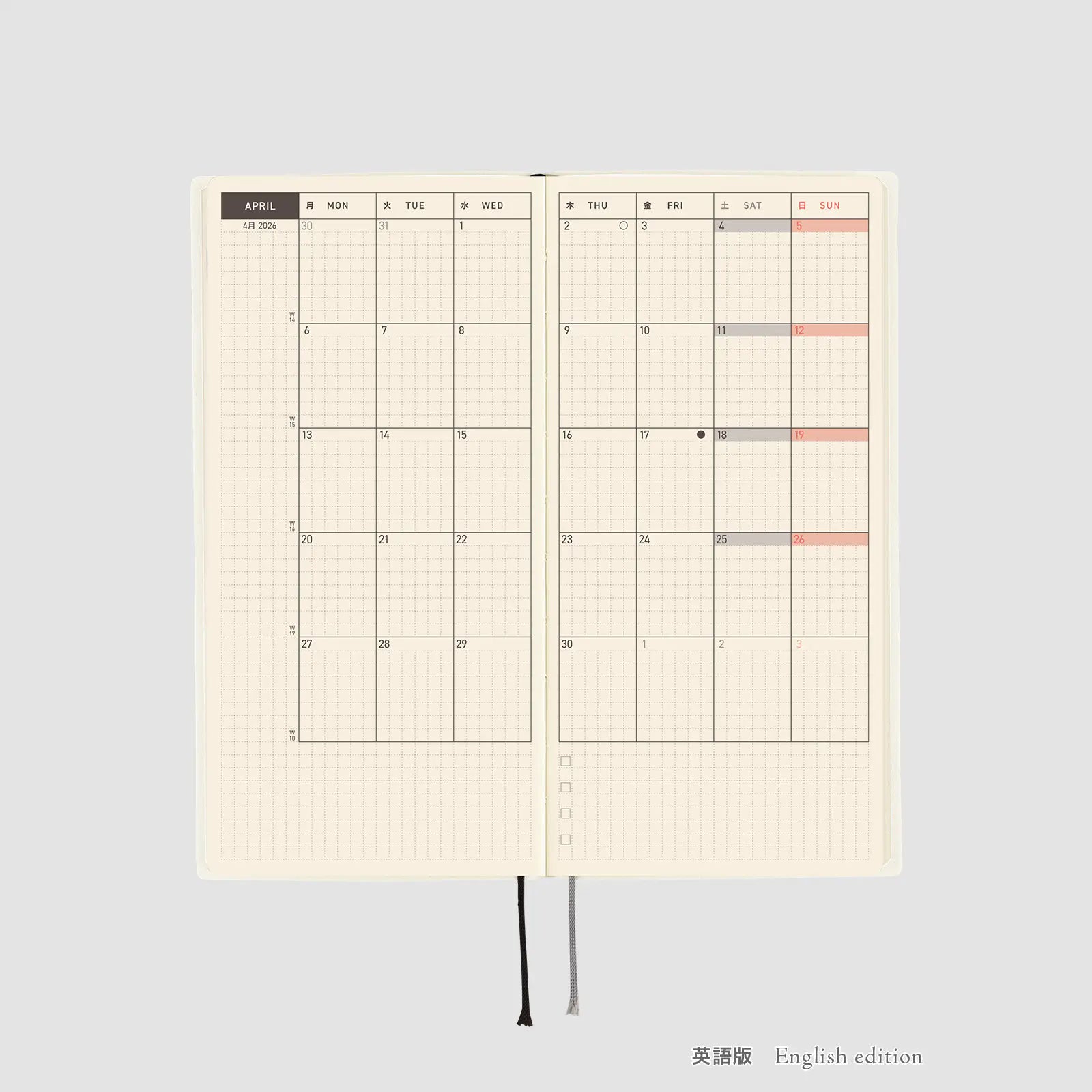 ■ Hobonichi Techo 2026 White Line: Ivory Weeks Softcover Book / Weekly Horizontal / Jan start / Mon start - English Edition