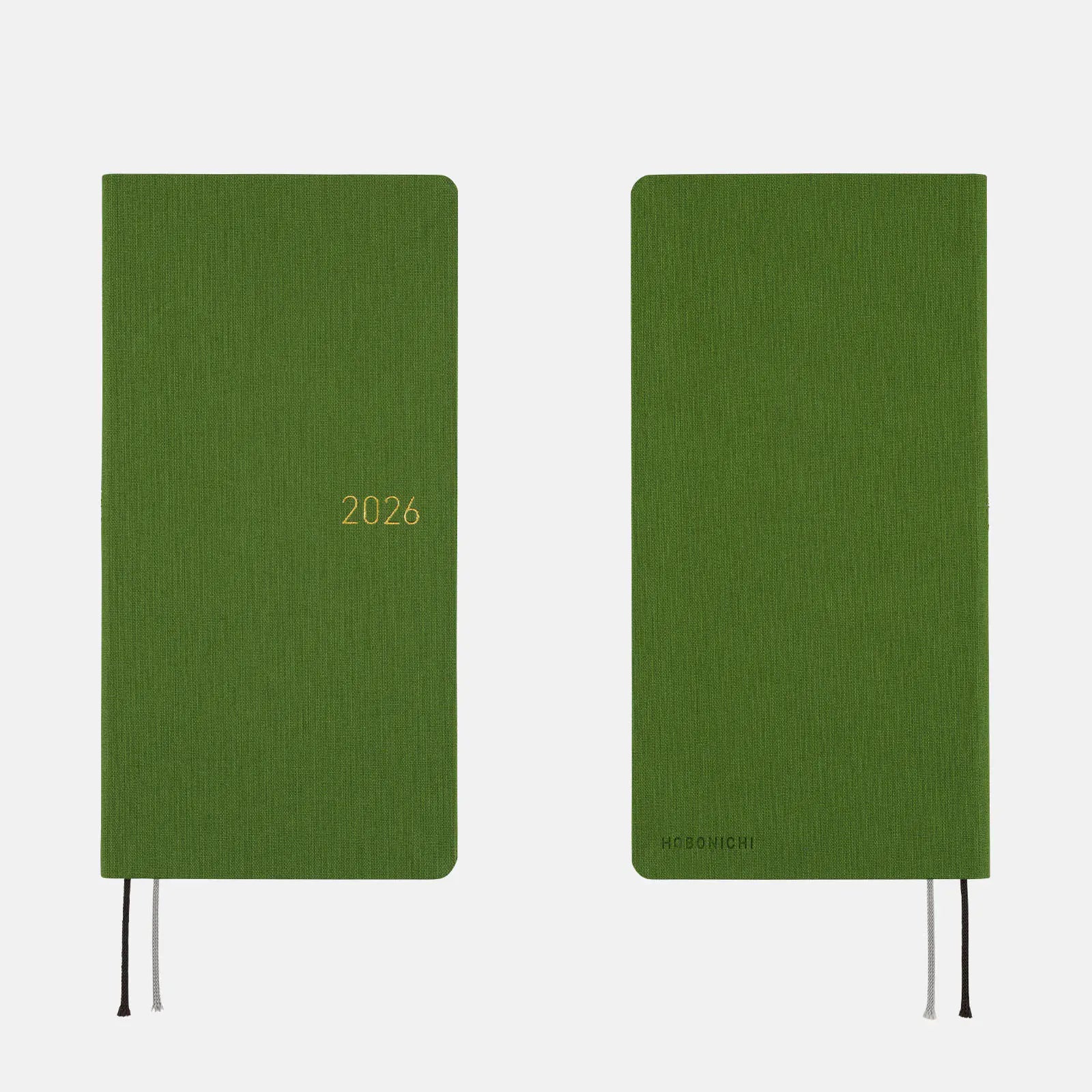 This listing is for a Hobonichi Techo 2026 Colors: Antique Green Weeks Mega Hardcover Book / Weekly Horizontal / Jan start / Mon start - English Edition.