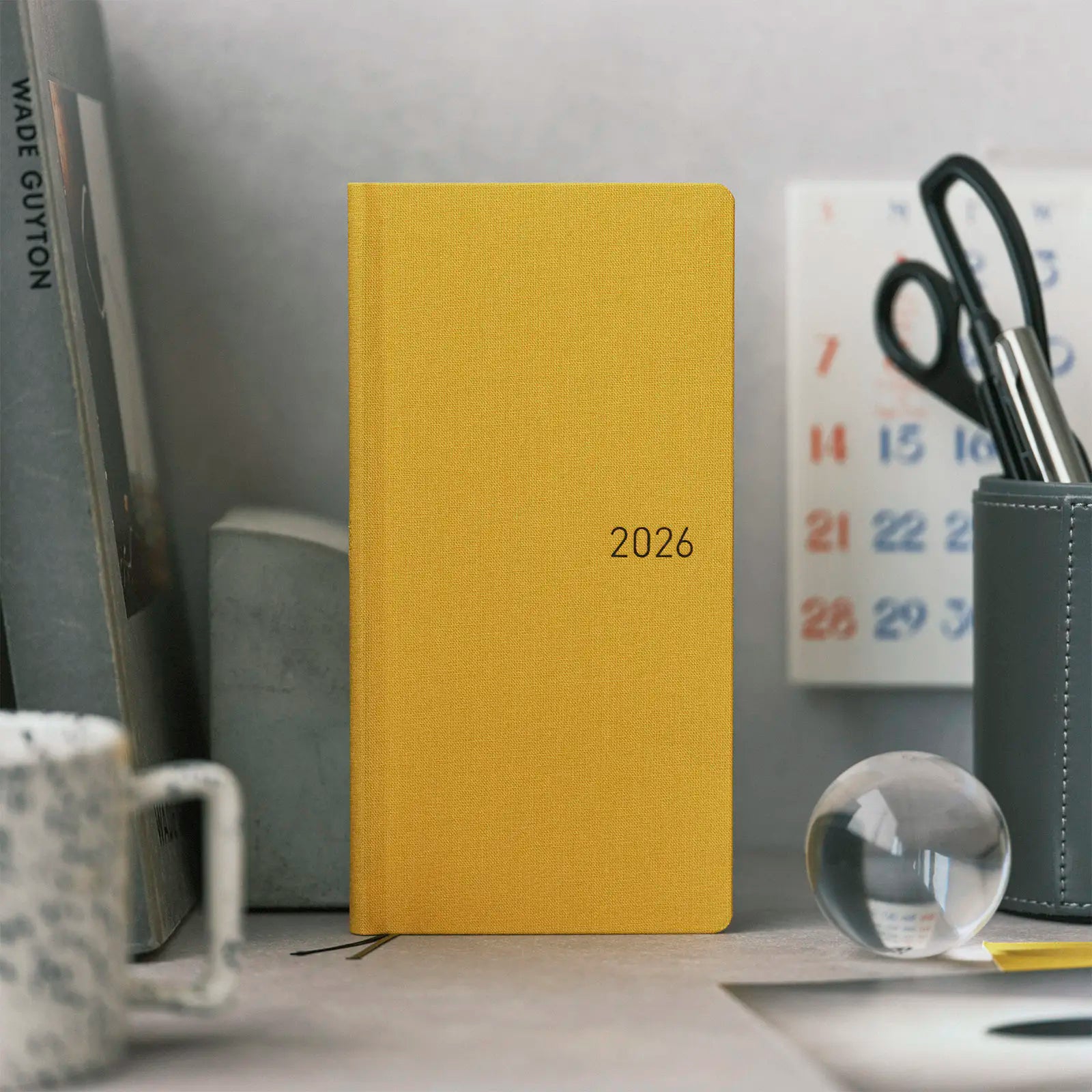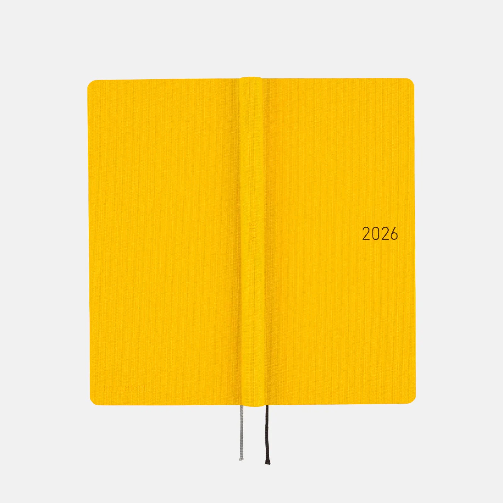 Full Moon Yellow is a bright yellow techo, made in the image of the full moon. The year 2026 is foil-pressed in brown onto the cover, making for a high-contrast design. This Weeks will lift your spirits simply by looking at it.