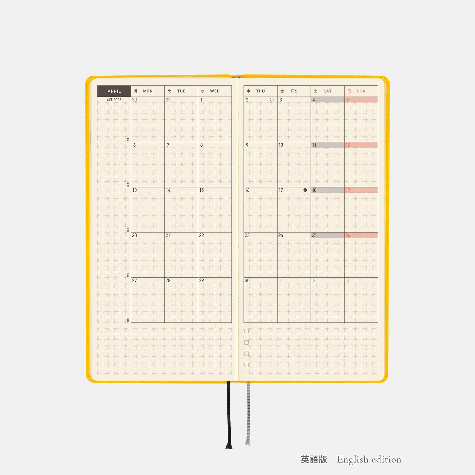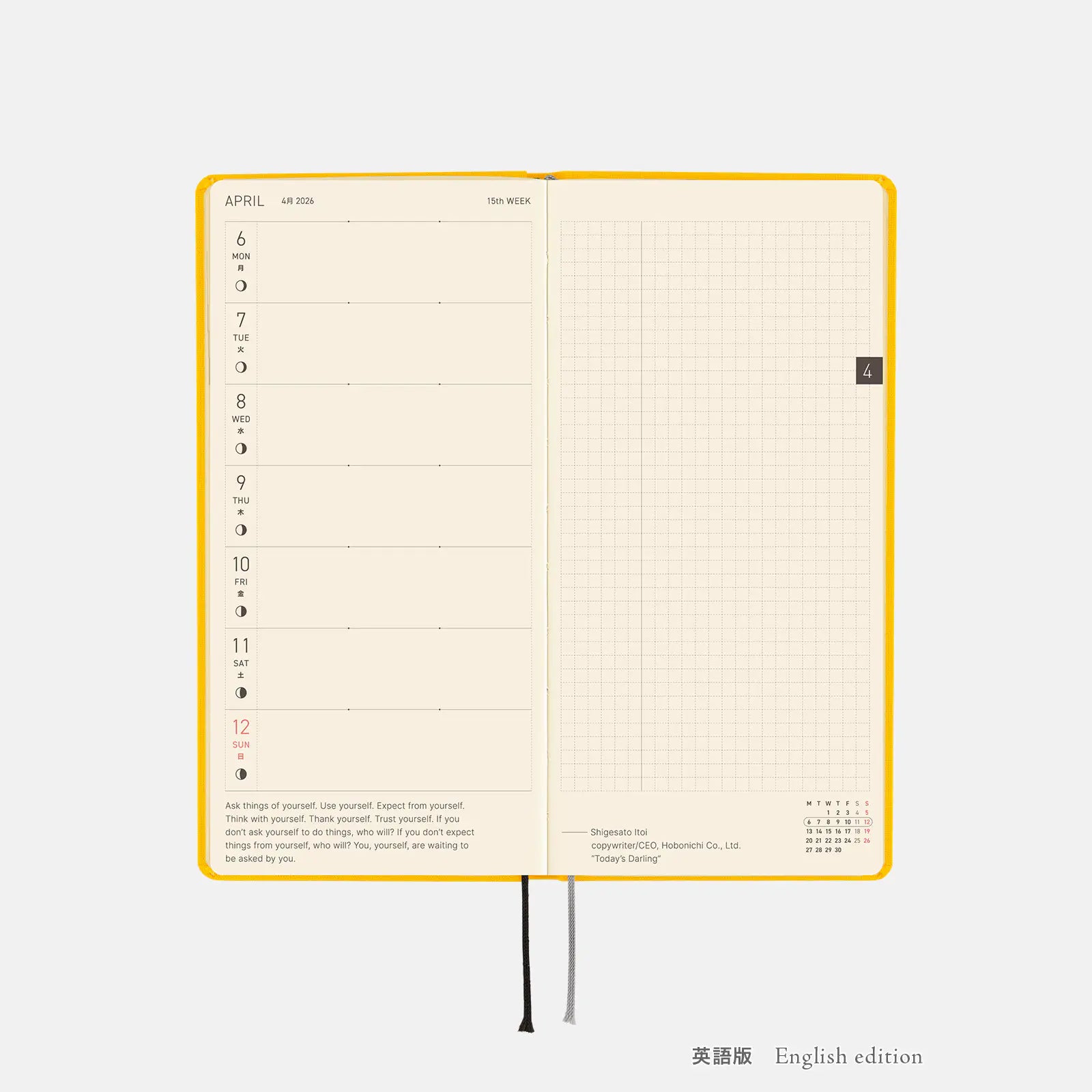 ■ Weeks MEGA, Hobonichi Techo 2026 Colors: Full Moon Yellow Weeks Mega Hardcover Book / Weekly Horizontal / Jan start / Mon start - English Edition
