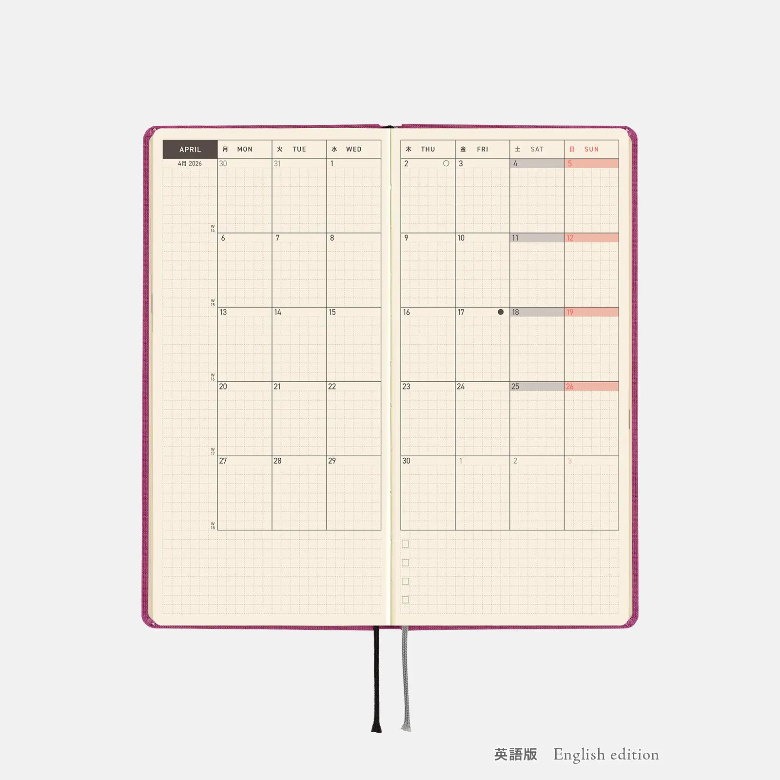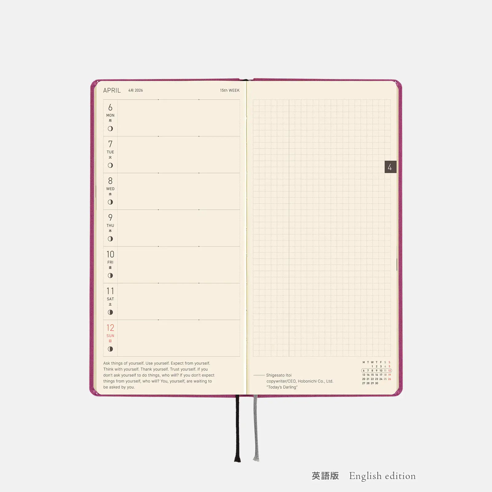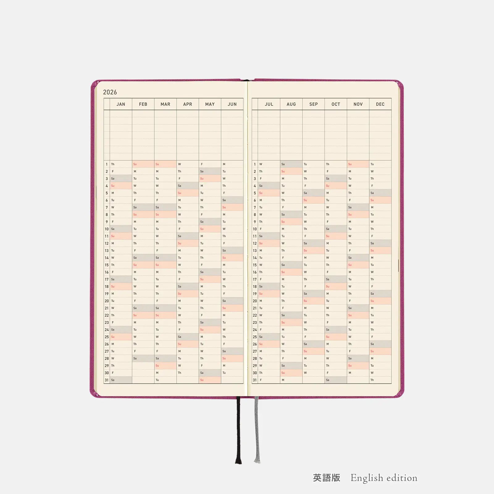 ■ Weeks MEGA, Hobonichi Techo 2026 Colors: Peony Purple Weeks Mega Hardcover Book / Weekly Horizontal / Jan start / Mon start - English Edition