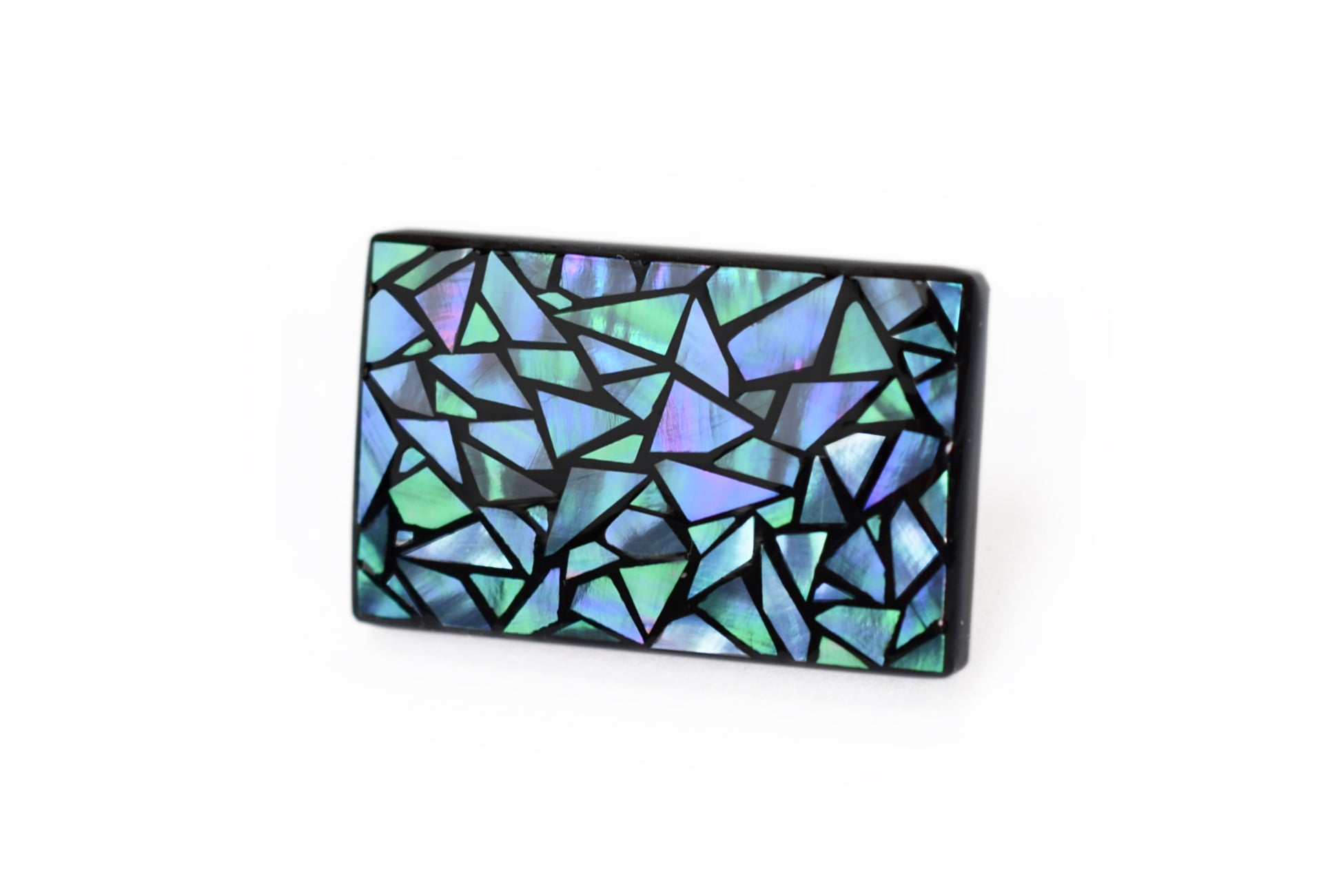 Raden Brooch - Stained Glass Style / Green Color / Large Size-, Japanese Lacquer Jewelry, Kyoto Jewelry