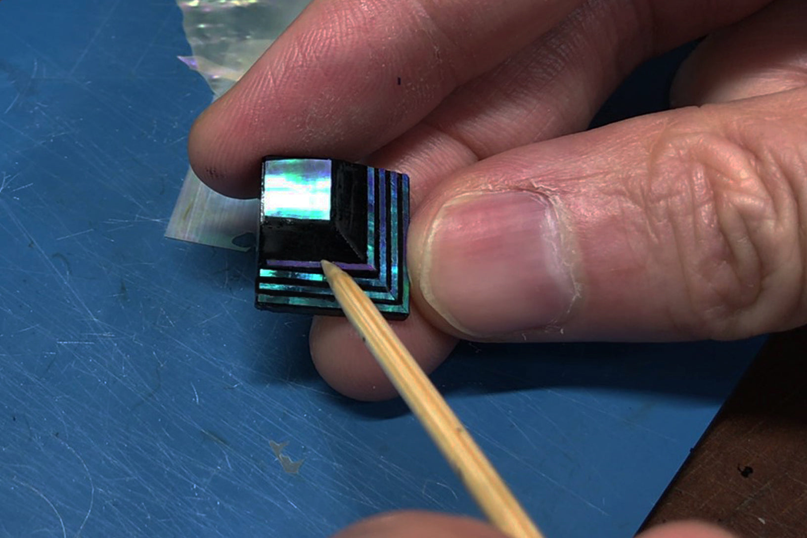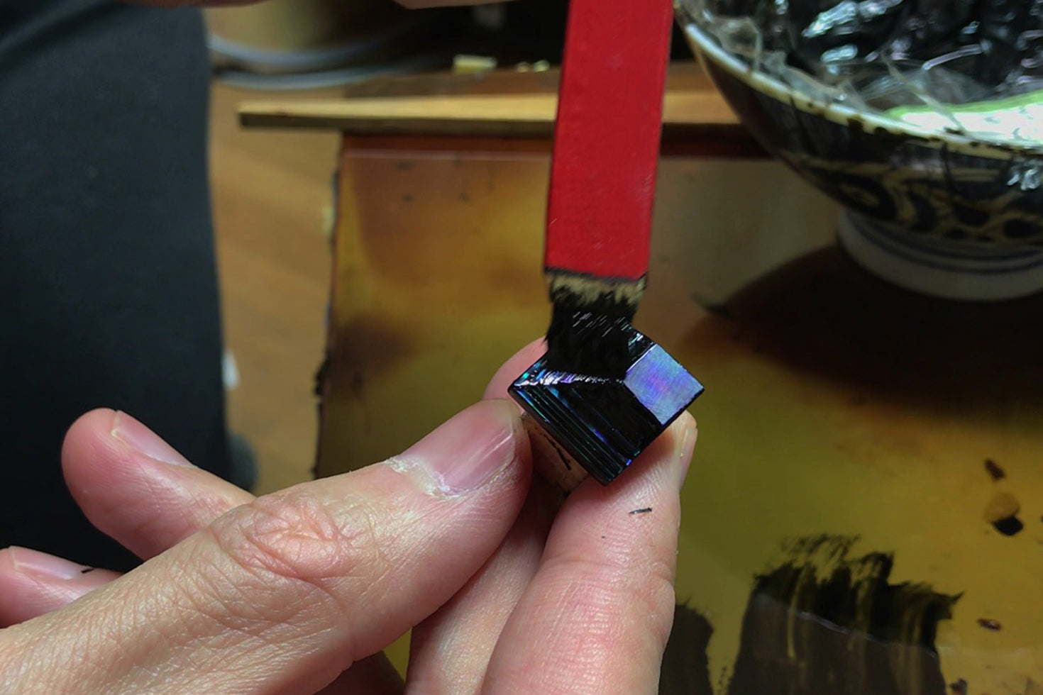 Raden is a traditional Japanese decorative craft. It is art of inlaying mother-of-pearl shell pieces in lacquer or wooden surfaces. The pieces reflect light and shine beautiful in white, blue, and other colors.