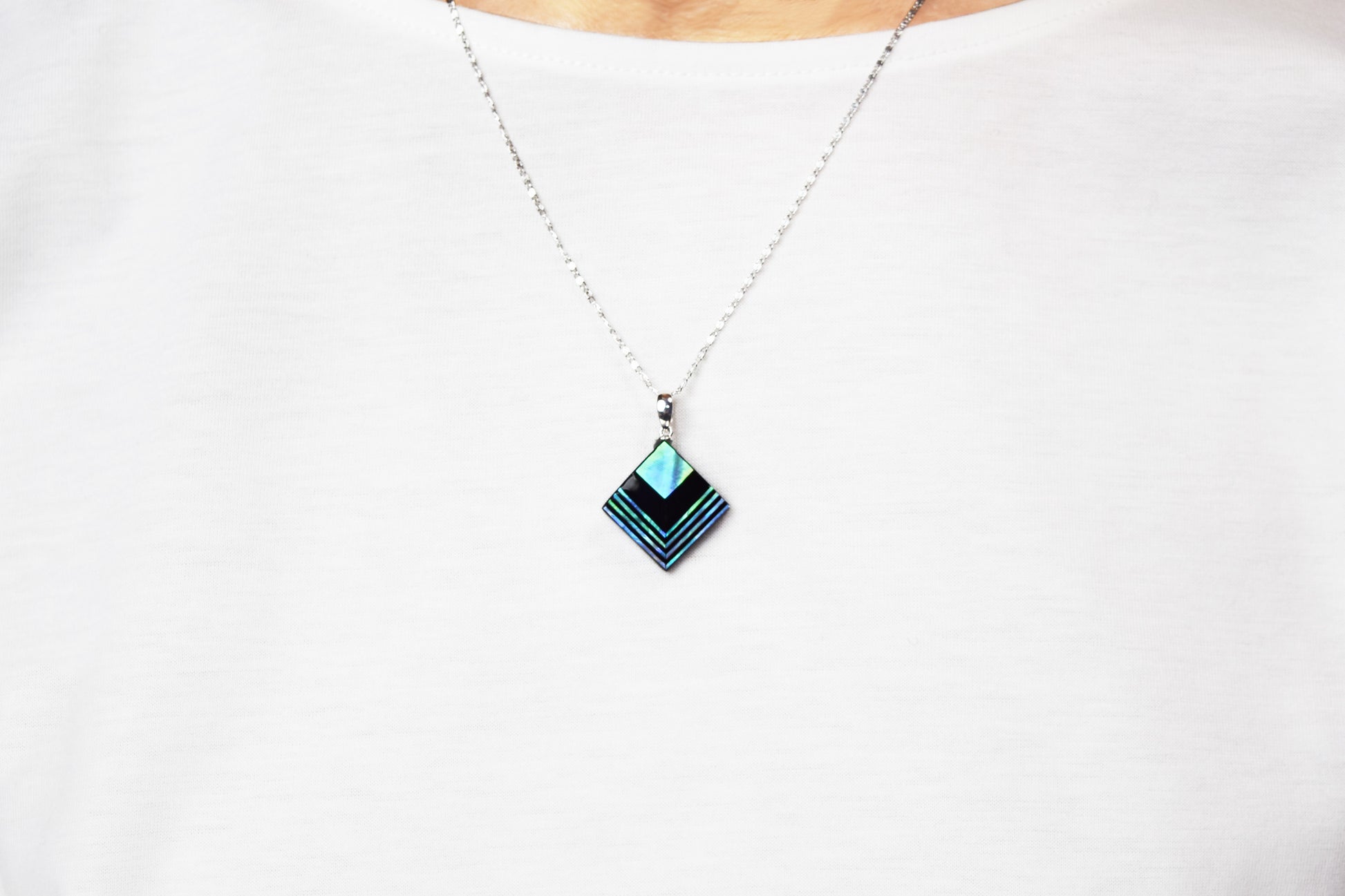 Raden Pendant Necklace - Moonlight on Water / Green Color / Medium Size-, Japanese Lacquer Jewelry, Kyoto Jewelry