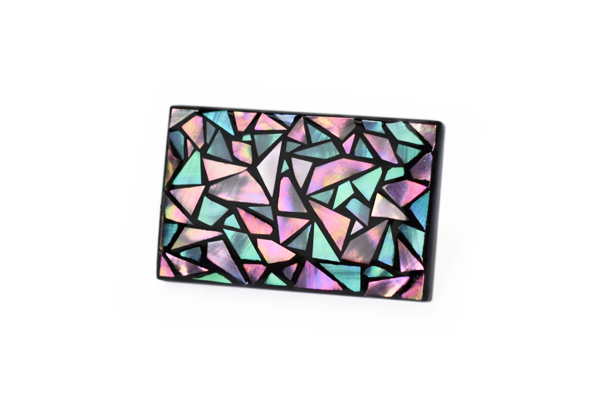 Raden Brooch - Stained Glass Style / Pink Color / Large Size-, Japanese Lacquer Jewelry, Kyoto Jewelry