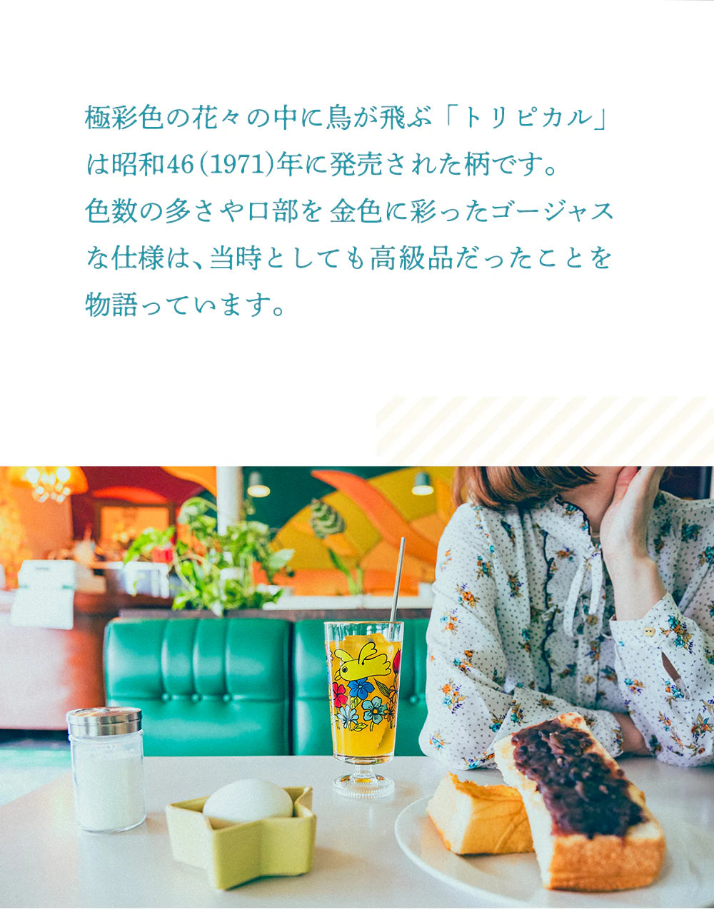 ■ Retro Design Glass - Bird and Flower - , Made in Japan