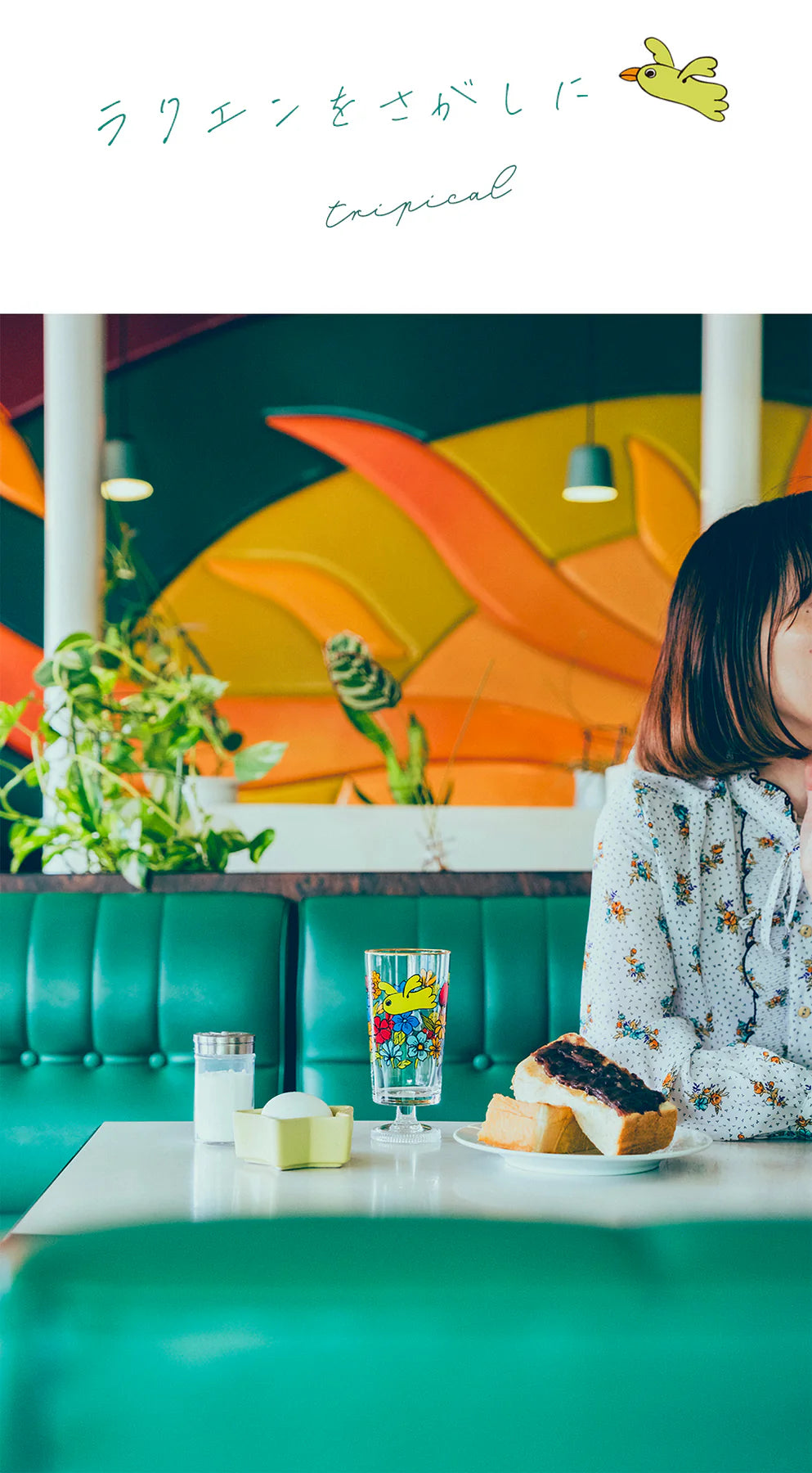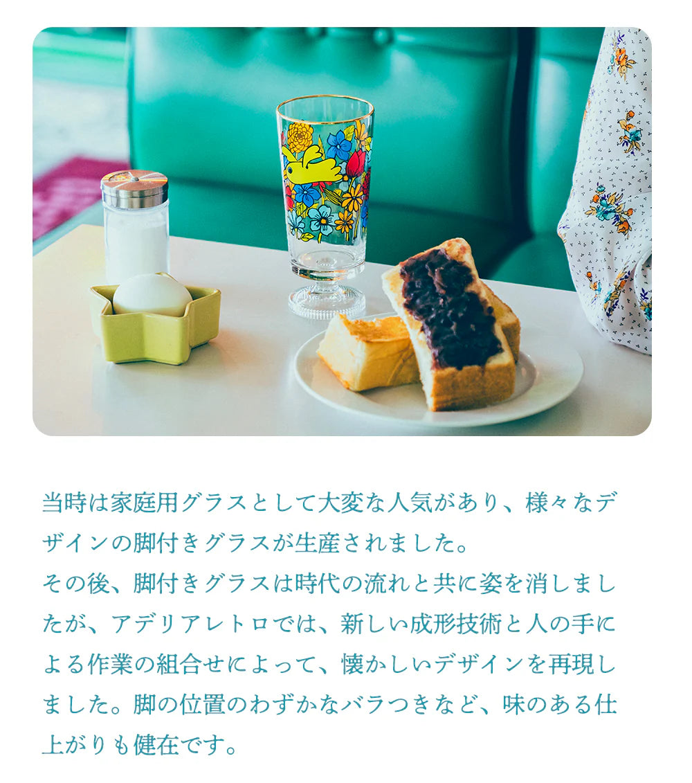 Retro Design Glass - Bird and Flower - , Made in Japan