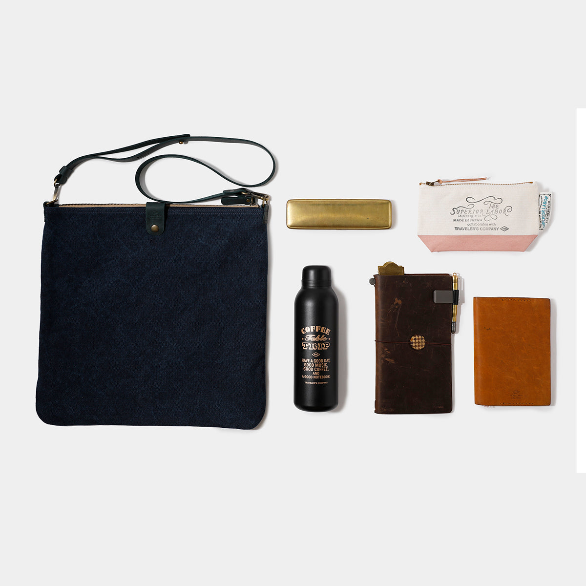 The TRAVELER’S FACTORY Original Canvas Shoulder Bag is designed for travel, short trips, or everyday use. Made with durable canvas material from Chiang Mai, Thailand, the belt strap is also made using the same leather as TRAVELER’S notebooks.