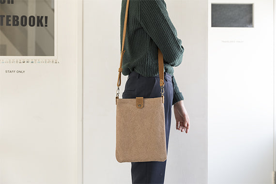 The TRAVELER’S FACTORY Original Canvas Shoulder Bag is designed for travel, short trips, or everyday use. Made with durable canvas material from Chiang Mai, Thailand, the belt strap is also made using the same leather as TRAVELER’S notebooks.